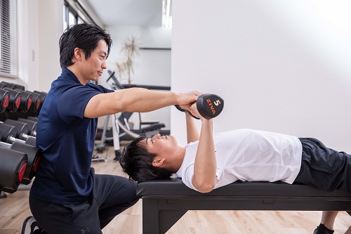 実際にマンツーマンの指導で体を動かして、自分に合った運動を見つけます。